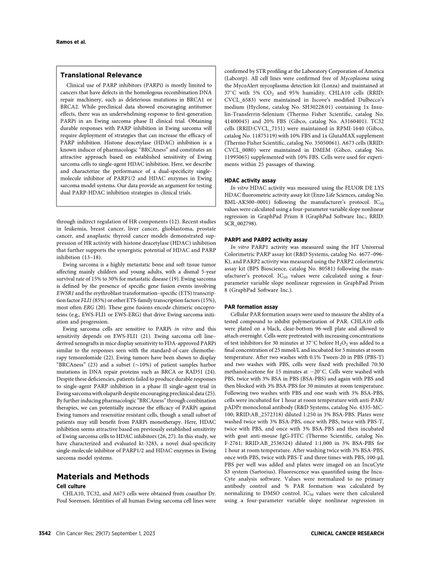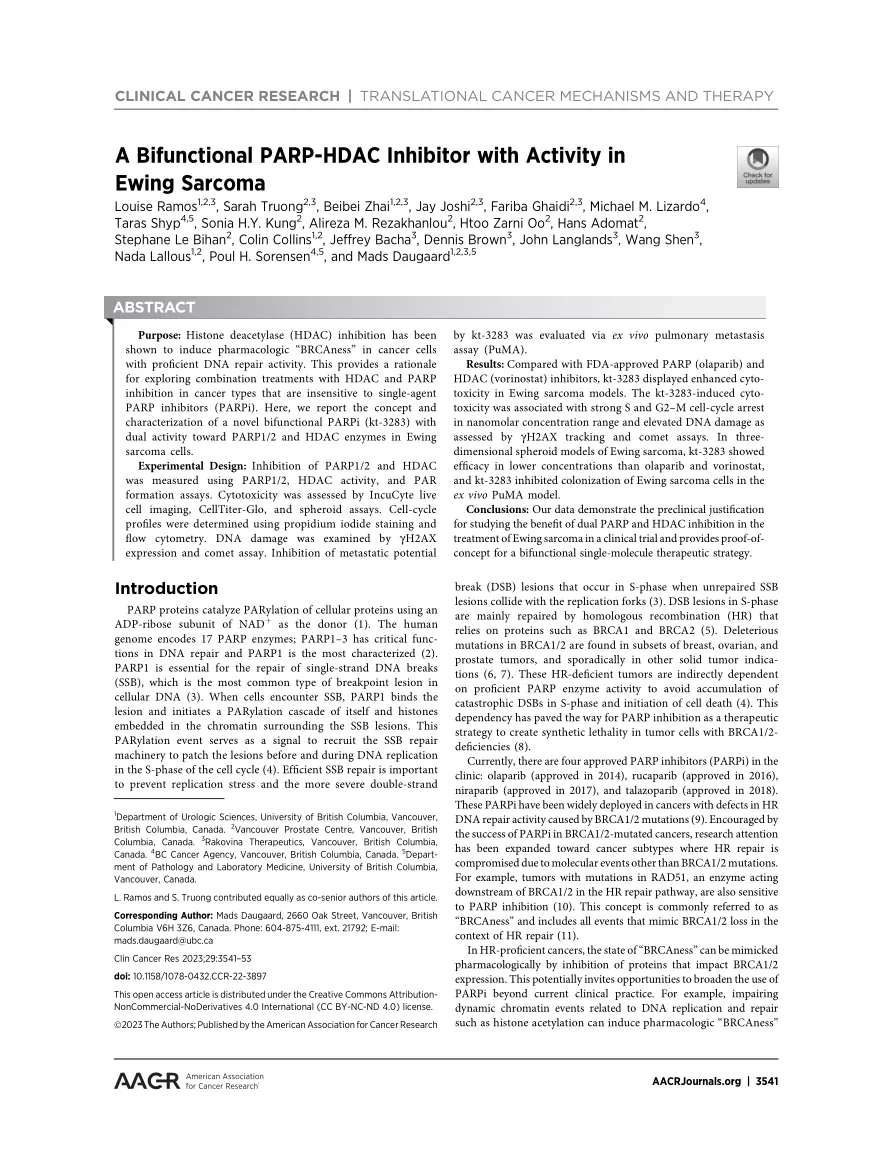 A Bifunctional PARP-HDAC Inhibitor with Activity in Ewing Sarcoma