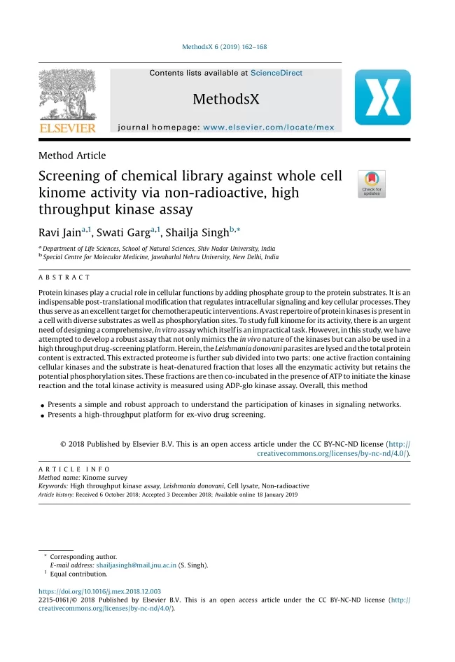 Screening of chemical library against whole cell kinome activity via non-radioactive, high throughput kinase assay