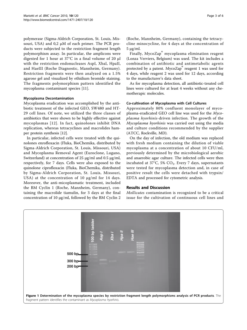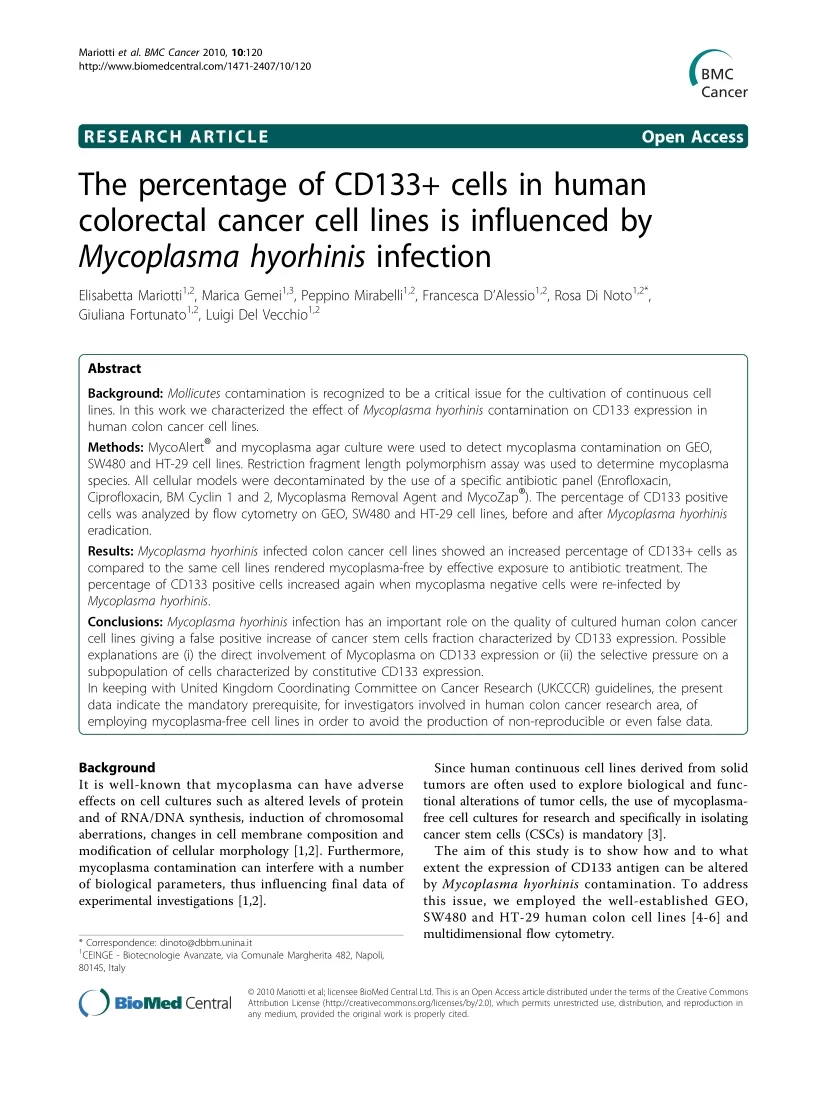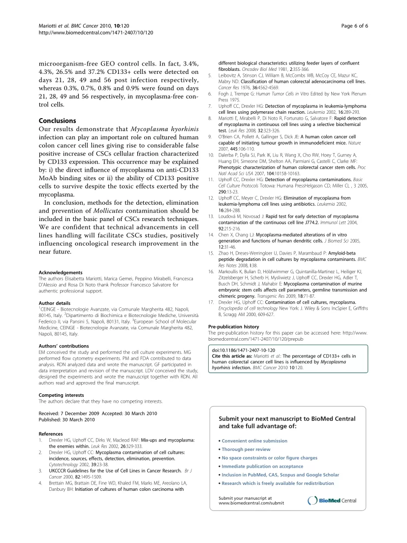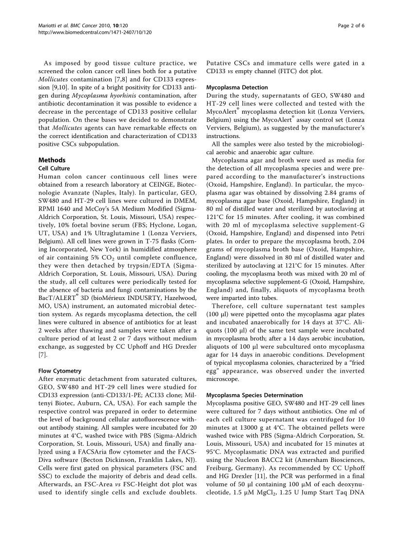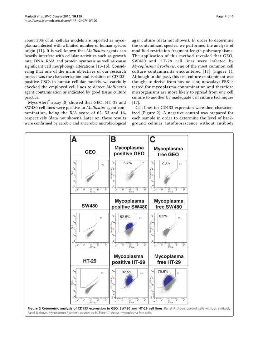 The percentage of CD133+ cells in human colorectal cancer cell lines is influenced by Mycoplasma hyorhinis infection